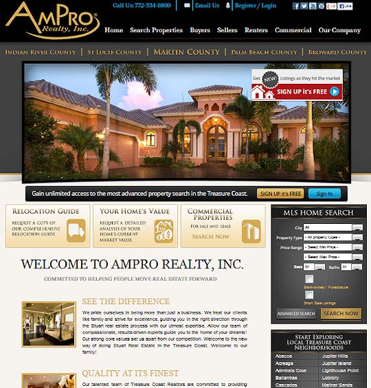AMPRO REALTY wanted an extensive site that would display all available listings, provide interactive features to engage and assist buyers, and provide methods to make contact with them. This site shows all active lisings in southeast Florida, including every neighborhood. They also wanted to host their site with a local, experienced web developer to help them with such a complex website.