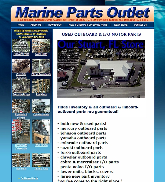 Marine Parts Outlet has a huge inventory of used marine parts, and needed a way to communicate that to customers. We came through with extensive videos and slideshows, as well as forms and prominent display of their toll-free numbers to bring the calls in. And this site brings in a ton of business!
